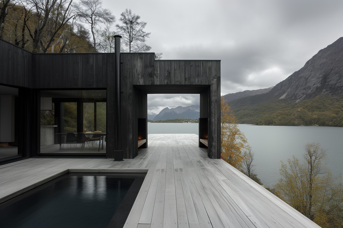 Fjordline is a modern lakeside retreat in Western Norway, blending minimalist architecture with stunning natural surroundings. Featuring dark timber cladding, expansive glass walls, and a seamless connection to the fjord, the home offers a serene and dramatic living experience.